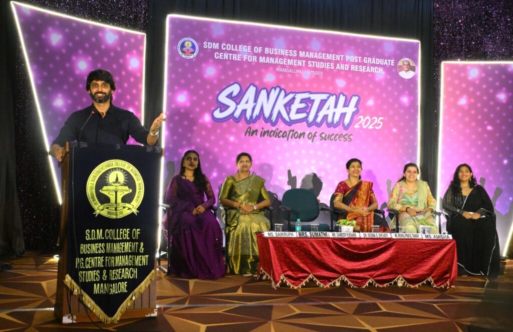 The institute celebrated annual day “SANKETAH 2025” on 29th August, 2025. Mr. Sameer Puranik, Director and Trustee, Sharada Group of institutions, Mangalore was the chief guest. He spoke on the importance of initiation and confidence in becoming successful leaders. He also encouraged the students to have a clear goal in life and put their 100 percent efforts and strive to achieve them. Alumna chief guest was Ms. Krupali P Thakar, Team Leader at J P Morgan Chase & Company motivated the students by narrating her own life story towards a successful career. Winners of various competitions conducted by forums, cells and clubs under student consortium were honoured during the occasion. Director of the institute, Dr. Seema S. Shenoy presented the comprehensive report on varied activities and achievements of the institute during the academic year 2024 – 25. Faculty coordinator of student consortium Mrs. Sumathi announced the best outgoing students, adjudged on different criteria. Ms. Amisha, president and Ms. Sikrupa M., vice president of student consortium were present on the occasion. The formal programme was followed by cultural performance by the students.