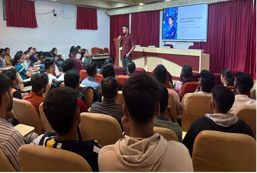 January 8, 2026Training and Placement Cell organised a workshop on ‘BUILD YOUR DIGITAL FOOTPRINT THROUGH LINKEDIN’ for II MBA students on 3rd January,2026 from 11.00 AM to 12.00 PM . The resource person, Mr.Vignesh Nayak, Project officer, Media and Communications Department, SKDRDP who is an alumni of our institute. He gave valuable insights on creating a strong LinkedIn Profile and also strategies to promote the content on LinkedIn. Dr.Shaini Naveen, Assistant Professor and Placement incharge coordinated the workshop.